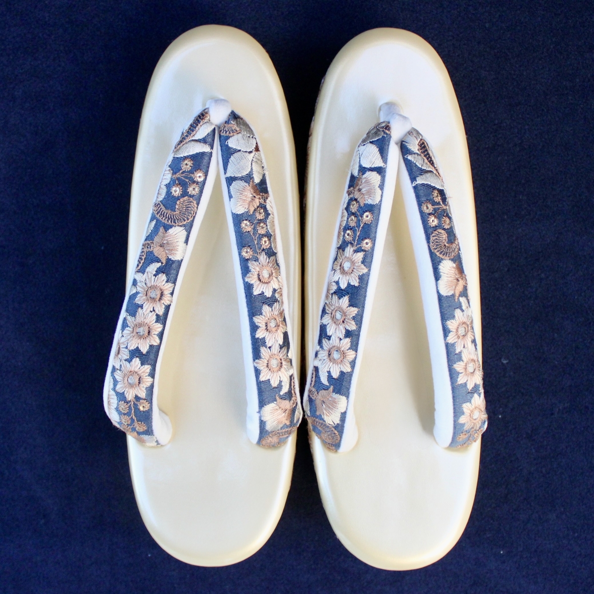 ※鼻緒裏に使っているベルベット生地は、湿った状態や汗をかいた状態での長時間の放置、または摩擦により、